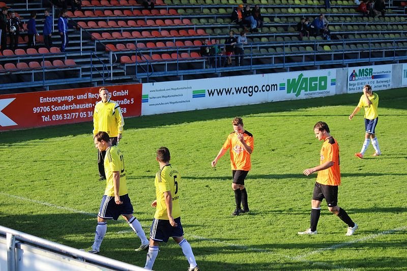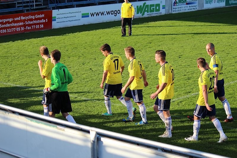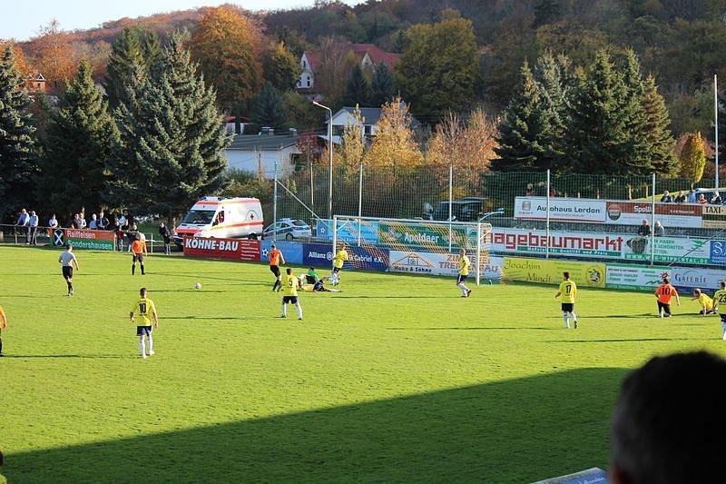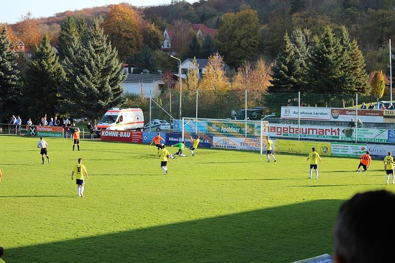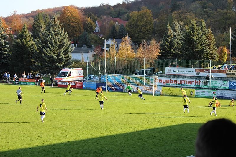 Von einem starken Polizeiaufgebot gesichert, ging es auf dem Rasen zum Glück besonnener zu. Auf dem Göldner von Sondershausen kam es zur Partie BSV Eintracht Sondershausen gegen Wismut Gera.