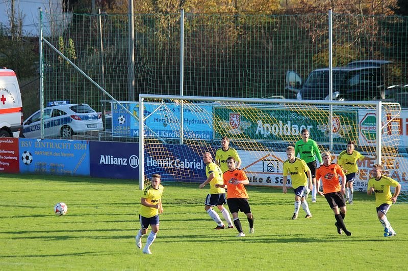 Dann ließ es Eintracht etwas langsamer angehen und solche Schüsse auf Just Tor wurden dann doch seltener. Im Gegenteil, Wismut war lange Zeit dem Ausgleich näher, als Eintracht mit dem 2:0. So klatsche der der in der 25. Minute an die Latte von Eintrachttorhüter Lars Greschke. Danach konnten sich die Eintrachtspieler bei ihrem Torhüter bedanken, dass nicht der Ausgleich viel. Höhepunkt dann gar der Handelfmeter Sekunden vor dem Pausenpfiff.
