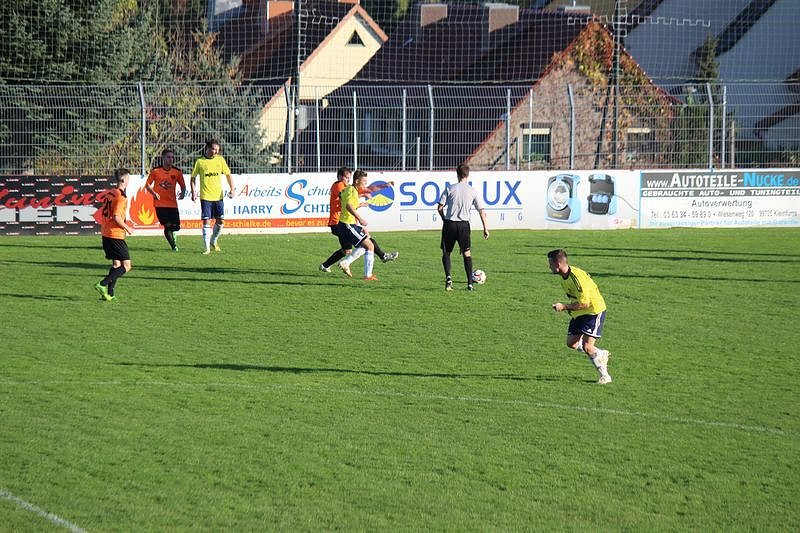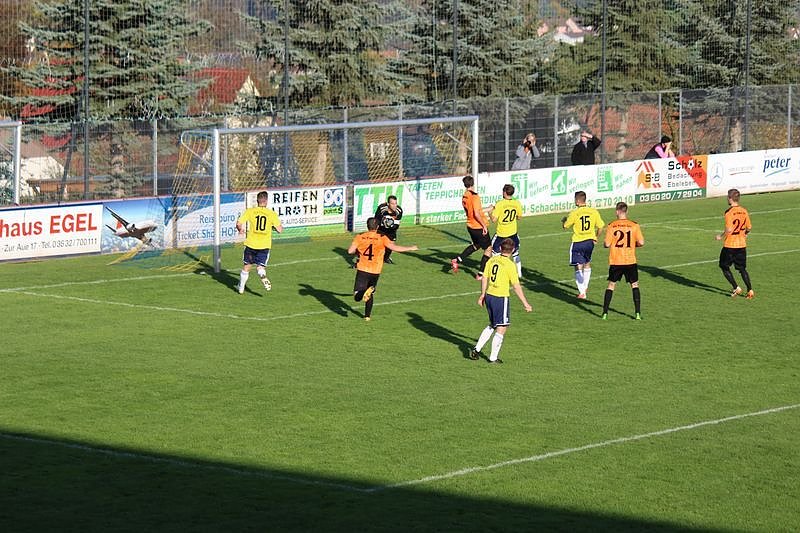 Dabei ging das Spiel auch gleich munter los, denn nach einer Bogenlampe schlug der Ball Sebastian Caspar geschlagen schon nach vier Minuten im Kasten von Wismut Torhüter Alexander Just ein.