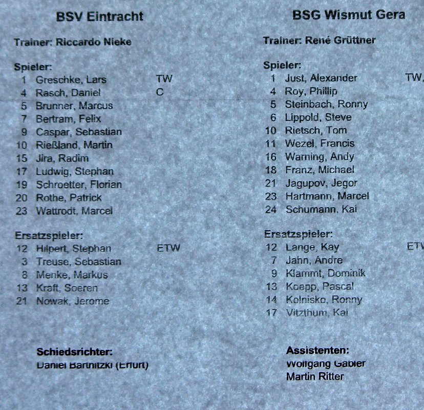 Und hier gibt es noch die Aufstellung. Wie sich das Ergebnis in der Tabelle auswirkt gibt es dann in der Fußballübersicht zum Samstag,