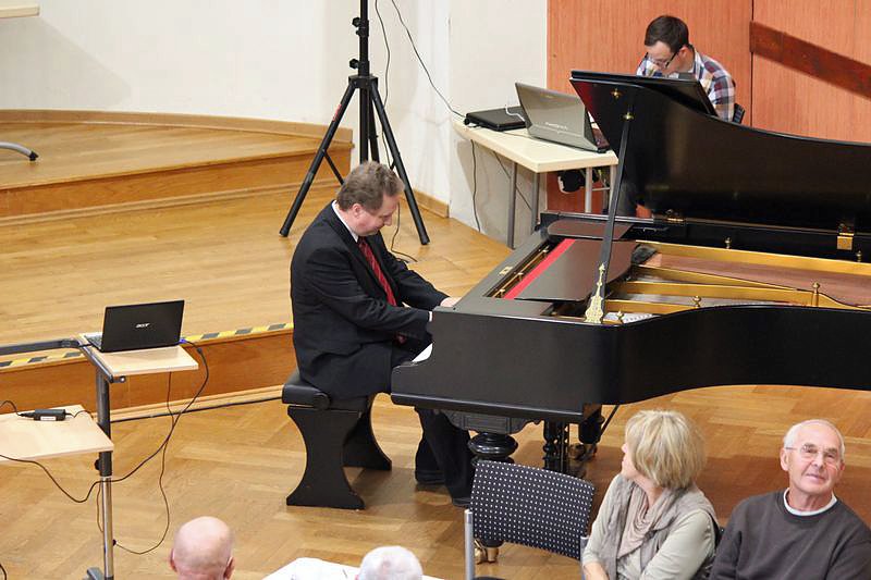 Die Veranstaltung wurde mit Klaviermusik durch Ronald Uhlig umrahmt. Das einige Zuhörer sich an einem Tisch während des Klavierspiels ausgerechnet einen ganzen Tisch mit Kaffee selbst versorgen wollten und dabei heftig mit den Tassen klapperten, gehört sich einfach nicht, und wurde selbst auf der fast vollbesetzten Tribüne mit viel Kopf schütteln quittiert. Die fünf Minuten hätten die Besucher wohl noch ohne Kaffee durchhalten können.