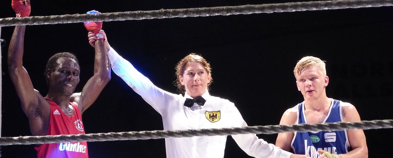 Weiter geht es los mit dem Weltergewicht: Hier stehen sich Abass Baraou (BSC) und Angelo Welp (NSV) gegenüber.