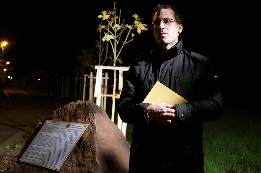 Die Kinder werden sehen, wie die Bäume wachsen und groß werden, sagte Pfarrer Gregor Heimrich, der die Gemeinde seit drei Tagen betreut. Martin Luther hätte sicherlich nicht nur einen Apfelbaum sondern auch eine Kastanie gepflanzt, erinnerte er in seiner Ansprache an den gestrigen Reformationstag.