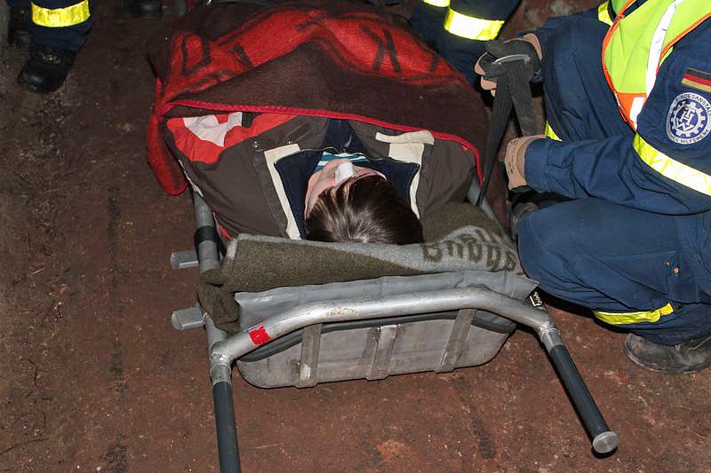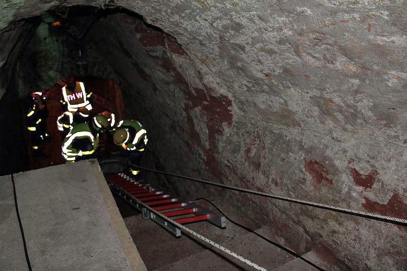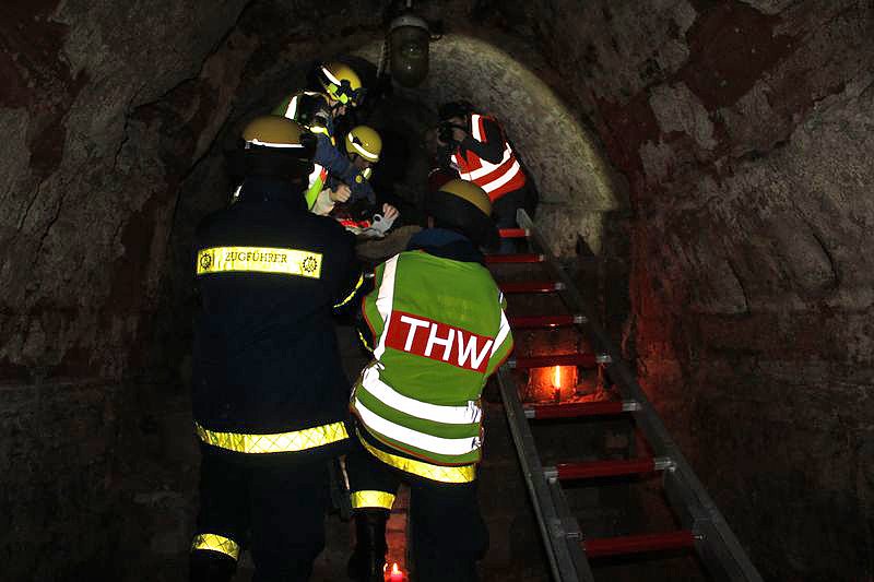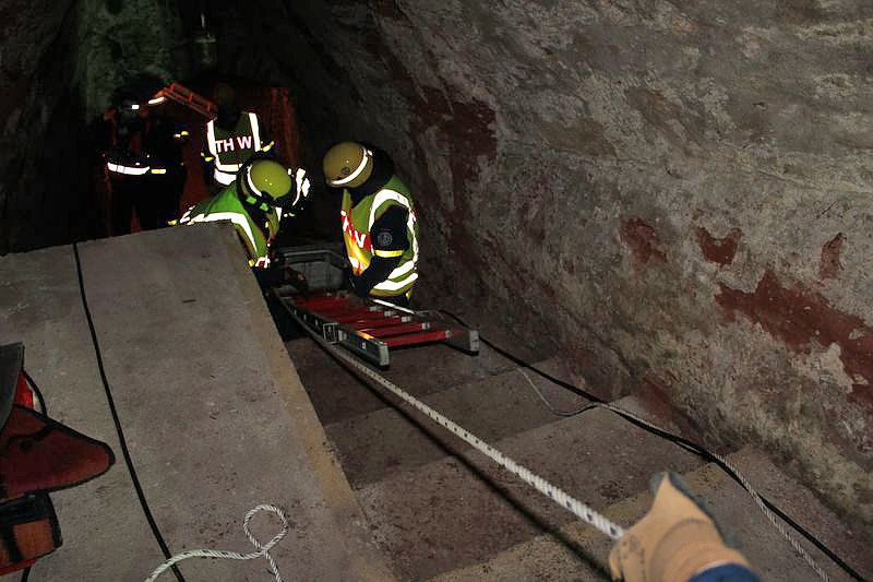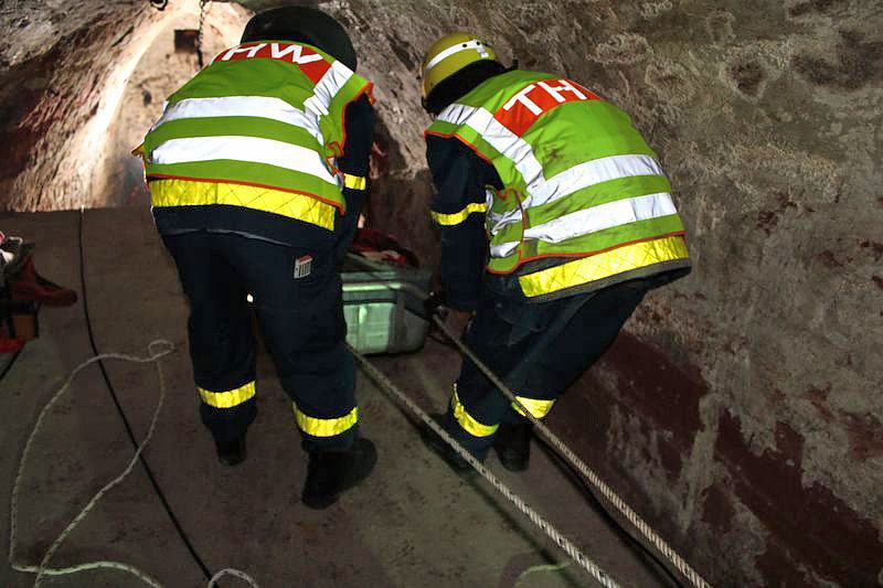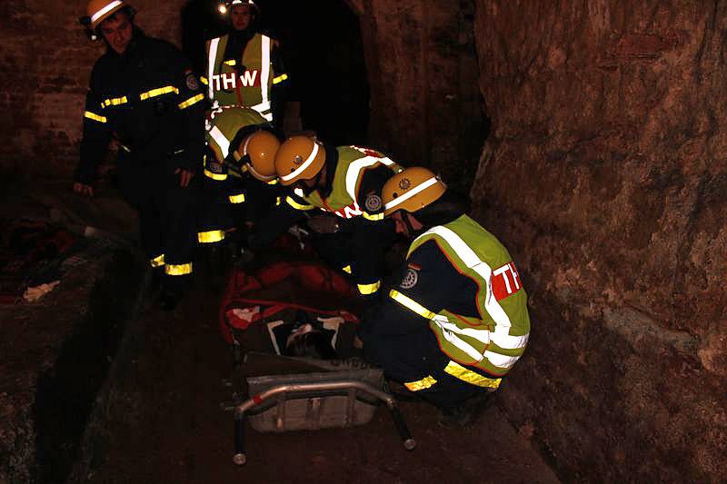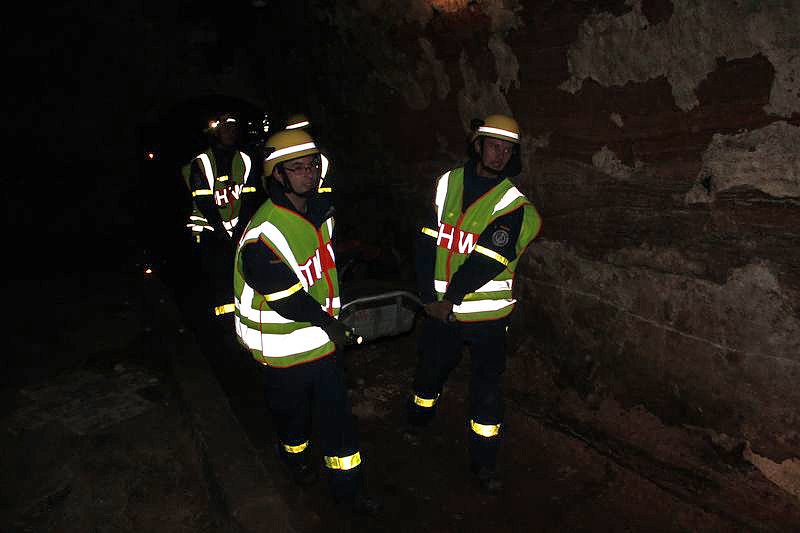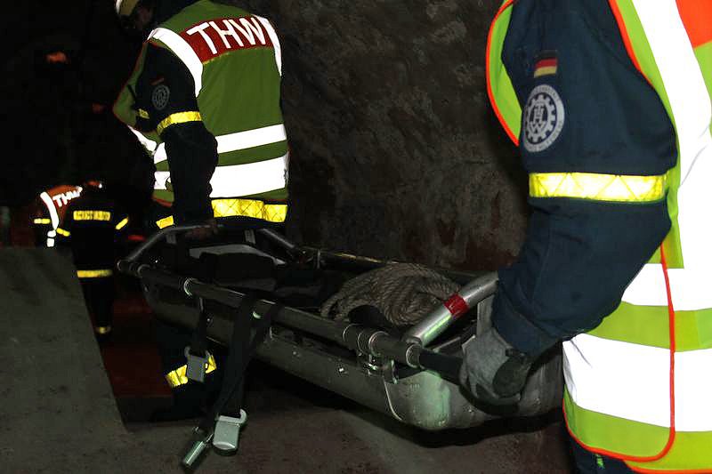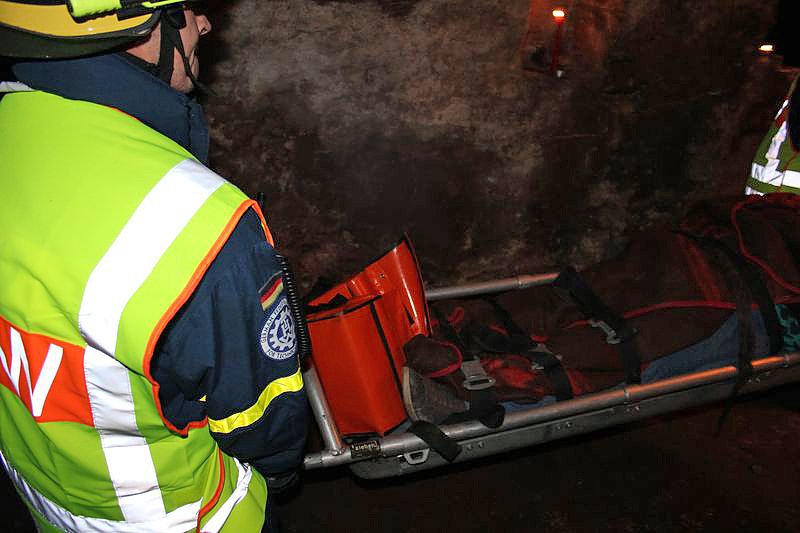 Dabei mussten auch sehr enge Stellen passiert werden und die verwirrten und teils renitenten Personen zu retten. Keine leichte Aufgabe für die Kameraden des THW, welche die Bergung realisierten mussten. Bei frischen 8°C kam man trotzdem ins Schwitzen und auch die recht hohe Luftfeuchtigkeit machte die Sache nicht einfacher.