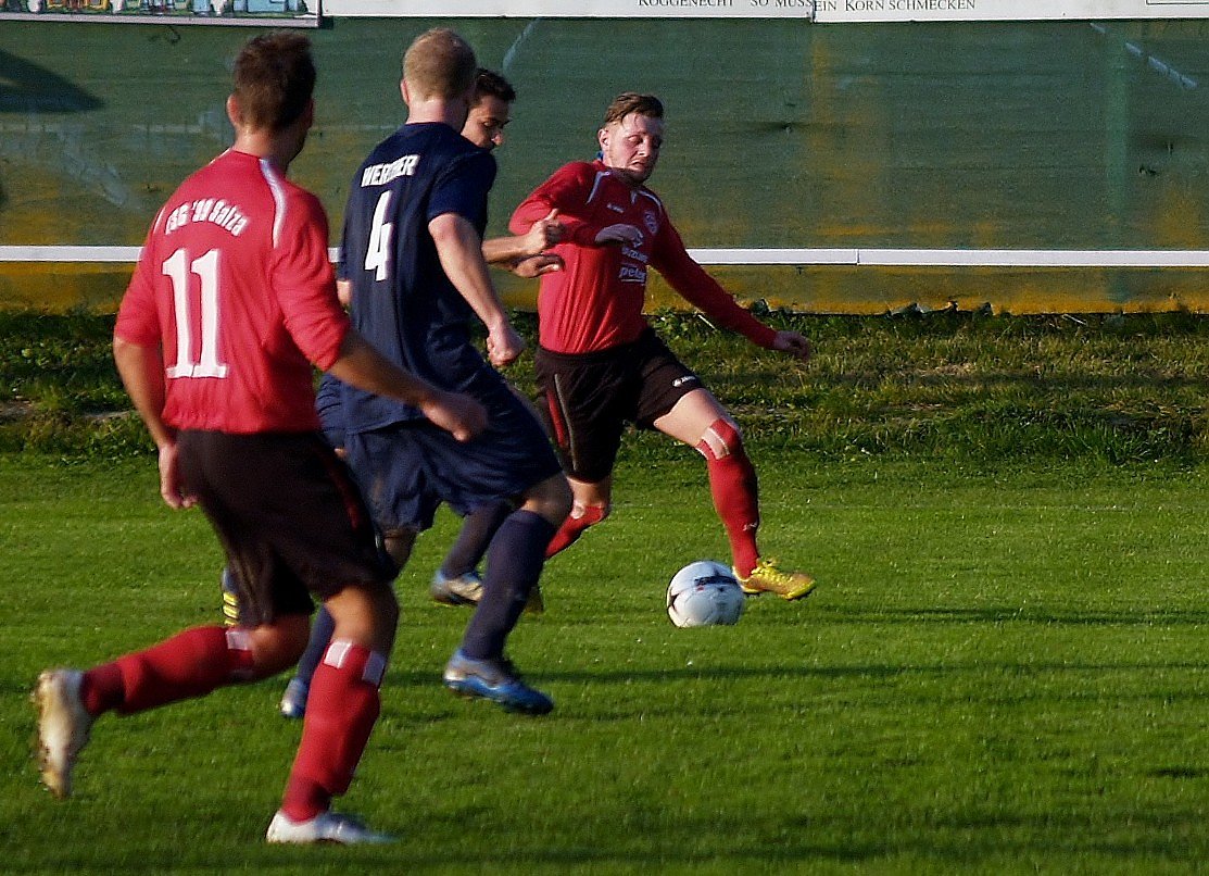 So merkte man beiden Mannschaften von Beginn an, dass sie diese Serien nicht abreißen lassen wollten. Die ersten beiden Chancen hatten die Salzaer durch Christioph Müller-Luh in der 17. Minute und durch Florian Heydecke kurze Zeit später. Doch beide Male reagierte Markus Teichmann im Tor der Gäste großartig. In der 23. Minute die große Gelegenheit für die Gäste aus Werther. Carsten Schiminitzki scheiterte gleich zweimal. Erst wurde sein Schuss abgewehrt und der anschließende Kopfball ging knapp über den Querbalken.