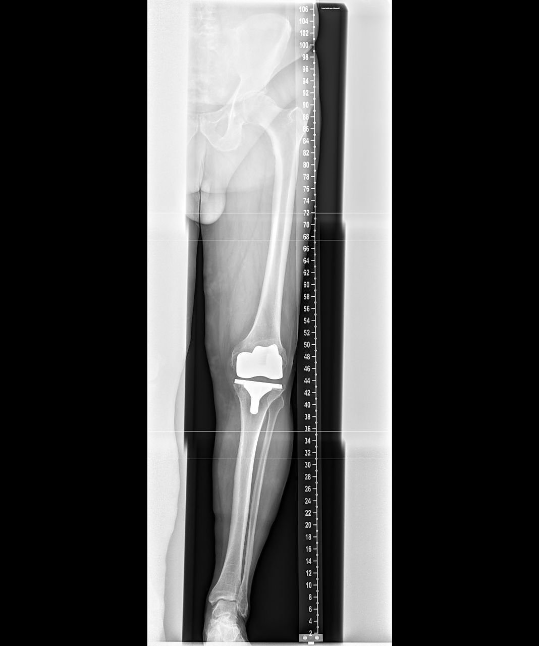 Außerdem ermöglicht die neue Röntgeneinheit die Anfertigung von Ganzbein- und Ganzwirbelsäulenaufnahmen direkt digital mit nachfolgender elektronischer fehlerfreier und versatzfreier Zusammenfügung der Bilddatensätze. Diese Ganzbein- und Ganzwirbelsäulenaufnahmen sind für die Planung endoprothetischer Versorgungen wesentlich. Darüber hinaus sind sie von großem Nutzen in der Therapieabschätzung bei Skoliose oder anderer Fehlstellungen der Wirbelsäule. Auch bezüglich der Bildqualität von im Liegen anzufertigenden Aufnahmen bietet das System wesentliche Vorteile. Häufig werden heutzutage Liegendröntgenaufnahmen mit Verwendung eines Rasters durchgeführt, um die sonst bildqualitativ beeinträchtigende Streustrahlung zu verringern. Die Röntgendosis steigt aber durch diese Rastertechnologie. Alternativ muss man die sonst schlechtere Bildqualität bei Liegendaufnahmen in Kauf nehmen, was die Befundung beeinflussen kann. Nach unserer Kenntnis erstmalig in Thüringen verfügbar, ist nun für diese schwerkranken Patienten (die deshalb nur im Liegen geröntgt werden können) das sogenannte Sky Flow Processing”, erklärt der Chefarzt.