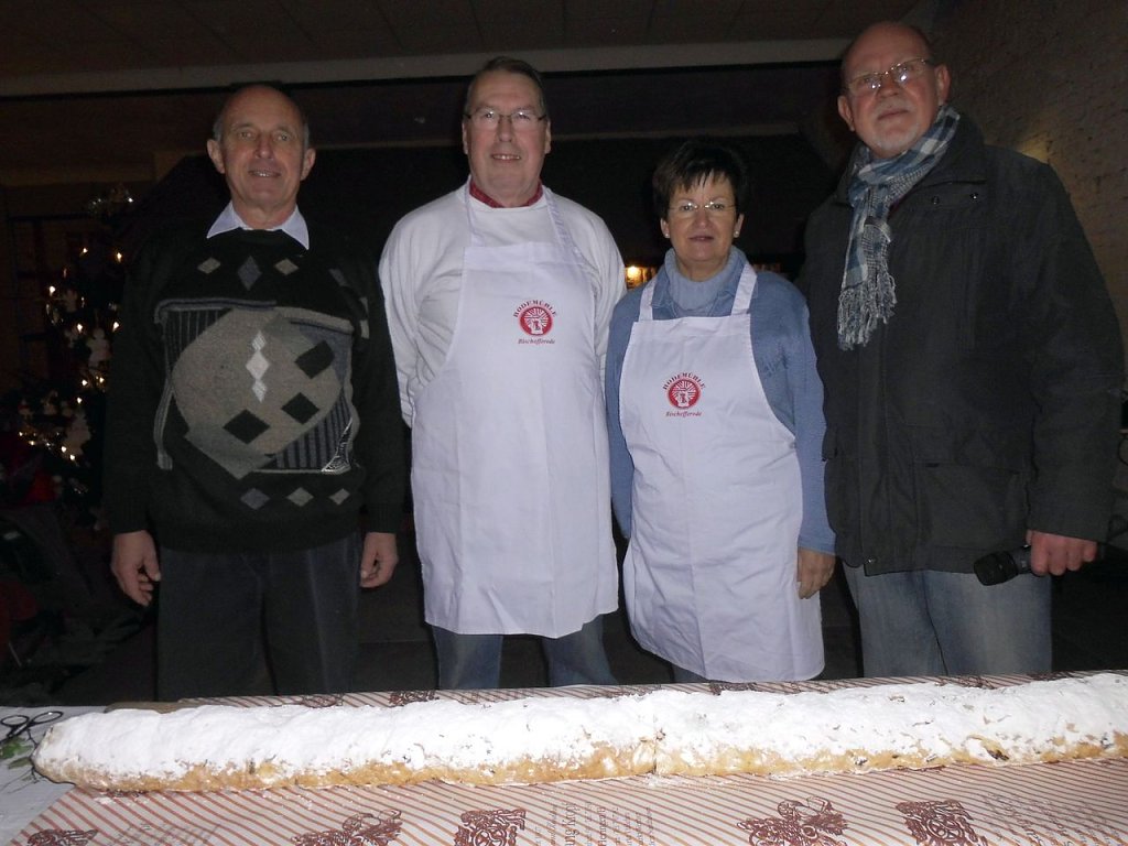 Am Samstag um 14.00 Uhr wird der Riesenstollen, gesponsert von der Bäckerei Kropf aus Heringen, durch den Bäckermeister, den Ortschaftsbürgermeister und seinen Helfern angeschnitten.