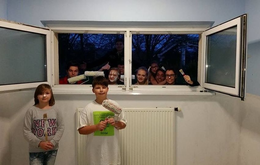 Ob Junge oder Mädchen - jeder packte mit an und keiner war sich zu schade. Als das Ausräumen fertig war, begannen manche mit dem Abkleben der Wände und Böden, dann war es endlich soweit, die ersten Farbstiche konnten sich sehen lassen. Doch nicht alles lief nach Plan. Plötzlich gab es große fragende Blicke, als die Farbe drohte nicht zu halten. Mit vereinten Kräften beseitigten wir das Problem.