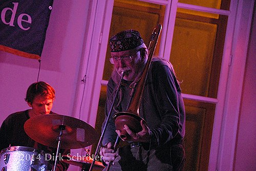 Den kurzweiligen Auftakt ergänzte er mit Musikbeispielen, was dazu führte, dass die anschließende Band HÜTTE und CHOR ihn zu einer Session mit in ihr Programm integrierte.