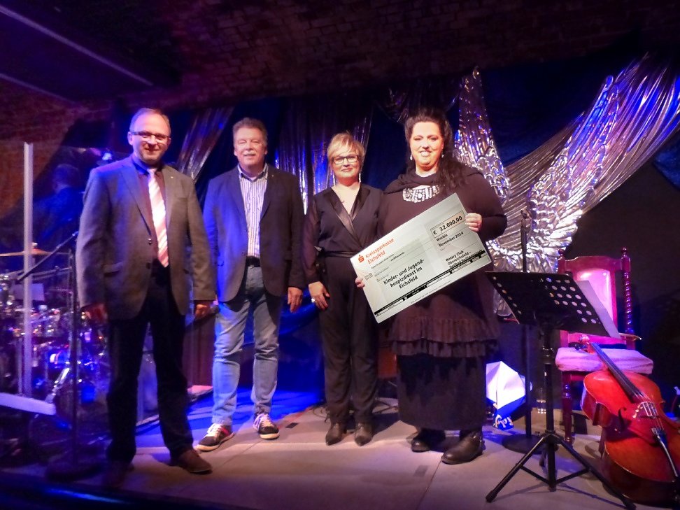 Princess Jo mit Frontfrau Jorita Solf gelang es wieder, die Besucher des Abends mit stimmungsvollen Liedern in die Adventszeit zu entführen. Freuen konnte sich an diesem Abend besonders Constanze Hunold vom ambu-lanten Kinder- und Jugendhospizdienst im Eichsfeld / Unstrut-Hainich-Kreis über eine Spende in Höhe von 12.000 Euro vom Rotary Club Obereichsfeld-Heilbad Heiligenstadt.