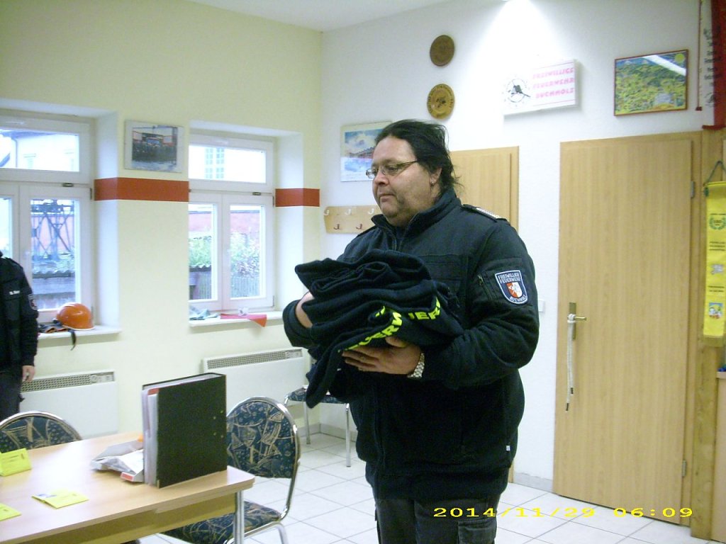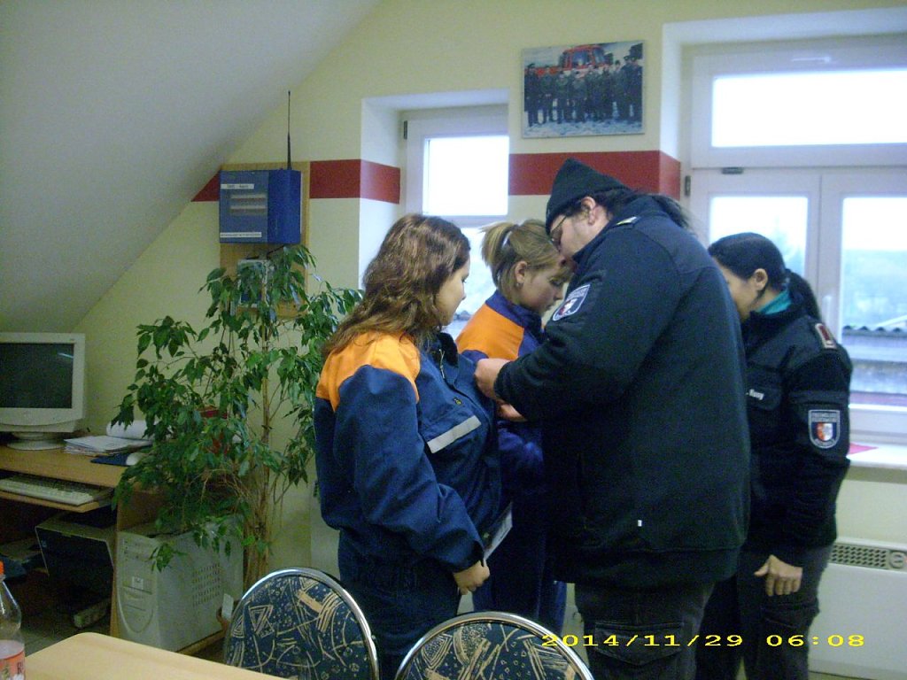 Nun standen sie zur Abnahme vor der Kreis-Jugendfeuerwehrwartin Manja Bernsdorf bereit und alle bestanden. Als Anerkennung konnte der Ortsbrandmeister jeden ein Sweetshirt aus Spenden der großen Kameraden überreichen.