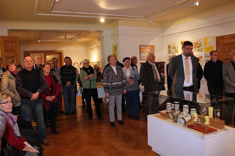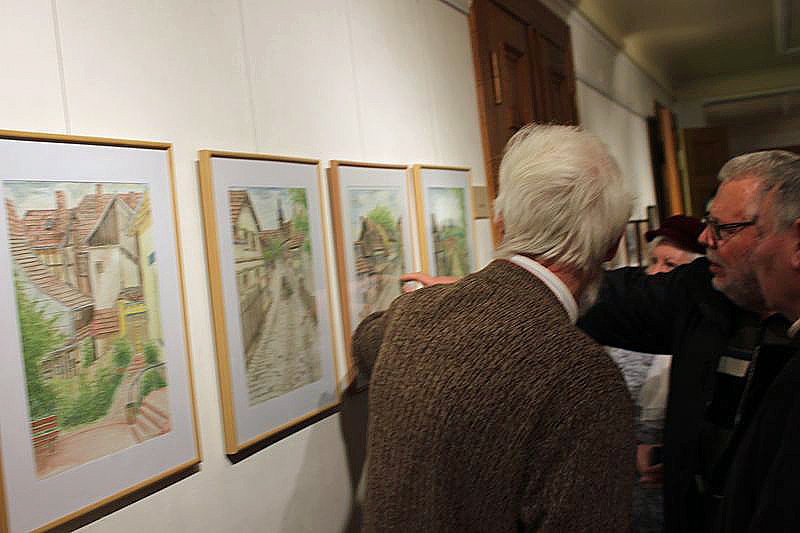 16:30 Uhr im Foyer des Rathauses Sondershausen, zur Ausstellungseröffnung des Gebrauchsgrafikers Peter Blume war es so voll, wie lange bei einer Ausstellungseröffnung.