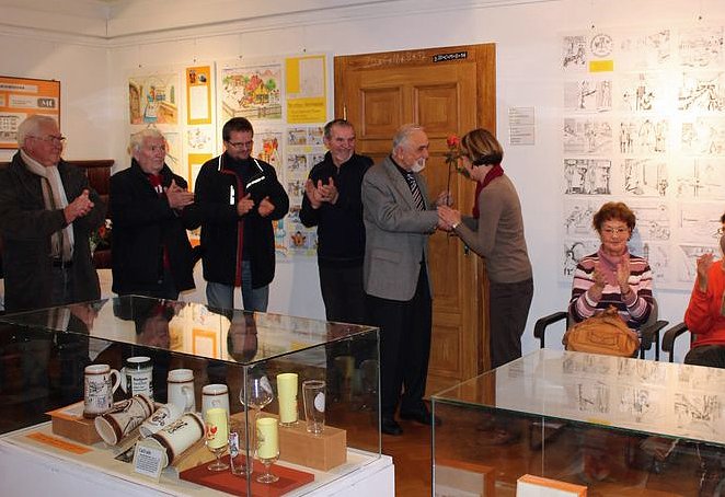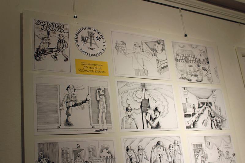 Und was er nicht alles gemacht hat und für wen alles. Ob noch zu DDR-Zeiten oder nach der Wende, für viele Firmen , Vereine und auch für die Kirche hat er gearbeitet. Auch wenn er jetzt im Ruhestand ist, für gute Freunde und Bekannte, illustriert er noch manches.