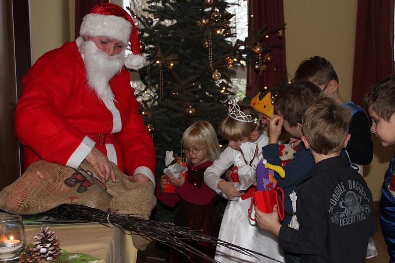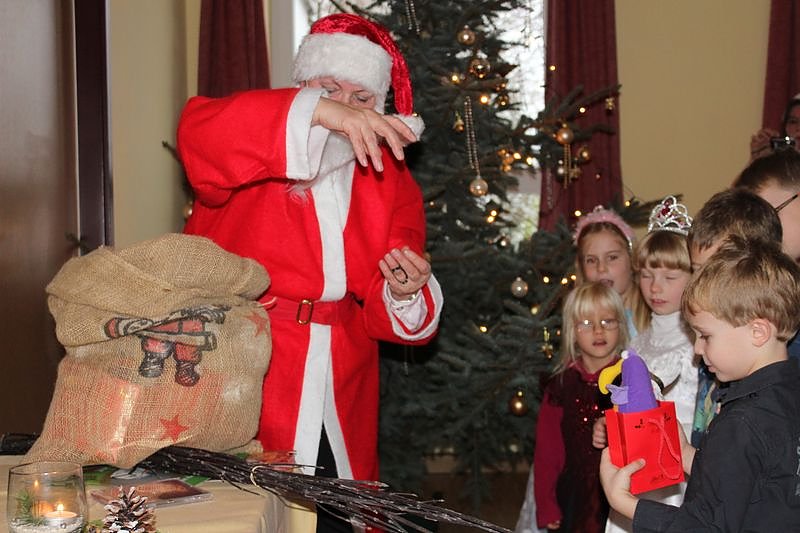 Und dann kam sogar auch noch der Weihnachtsmann vorbei und brachte kleine Geschenke für die fleißige Theatergruppe vorbei.