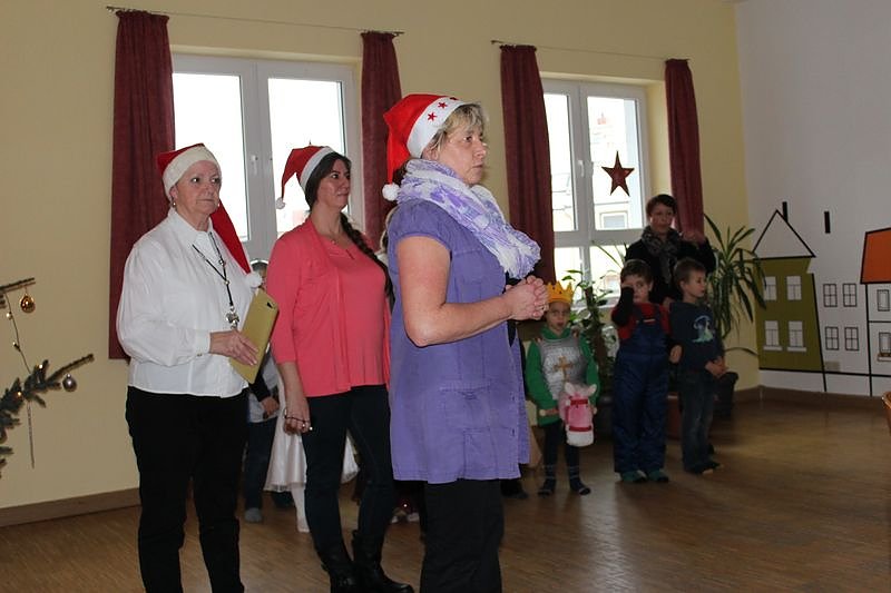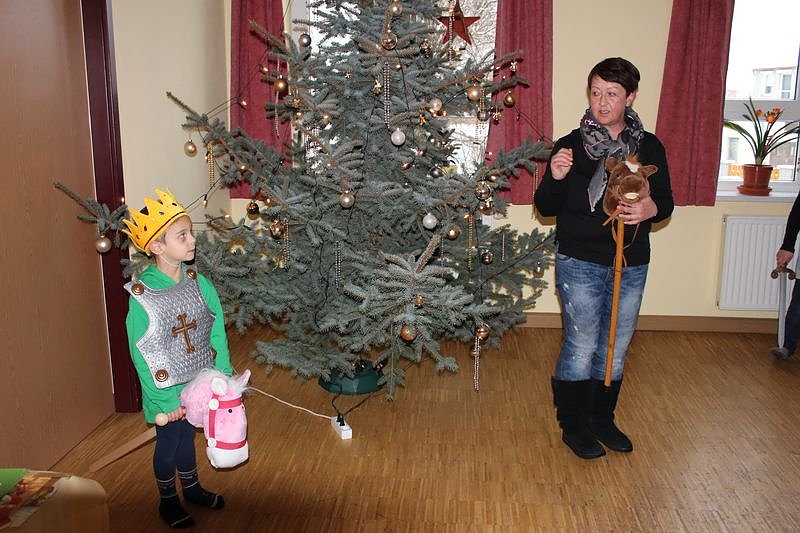 Als Theatergruppe agierten Vorschulkinder der Kita "Pusteblume". Mit ihrem Theaterstück über den bösen König Grirr mit seinen drei Töchtern und dem guten Prinz Ha, der die schöne Prinzessin "Schmatz Olala" entführte und heiratete. Und auch die anderen zwei Prinzessinnen verließen den bösen König.