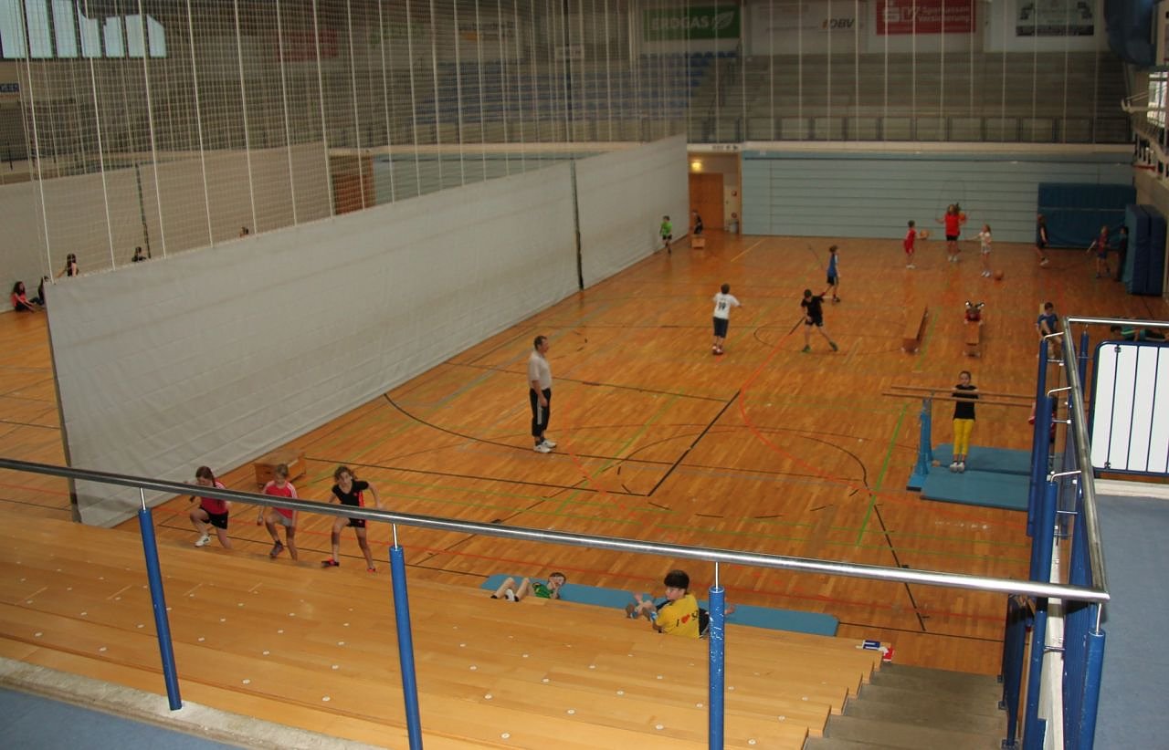 In der Wiedigsburghalle, die derzeit aufgrund der Fußbodenschäden gesperrt ist, muss der Hallenschwingboden einschließlich der Fußbodenheizung erneuert werden.