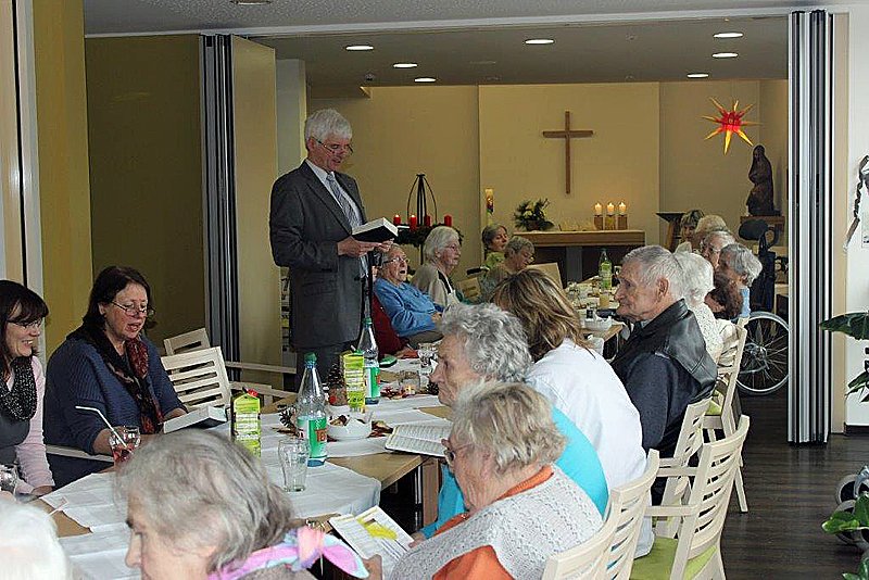 Die Bewohner bereiteten ihm einen herzlichen Empfang mit selbstgebackenem Weihnachtsgebäck im Andachtsraum des Hauses. Alles hier ist sehr liebevoll gestaltet, man spürt die warmherzige Atmosphäre, lobte Johannes Selle.