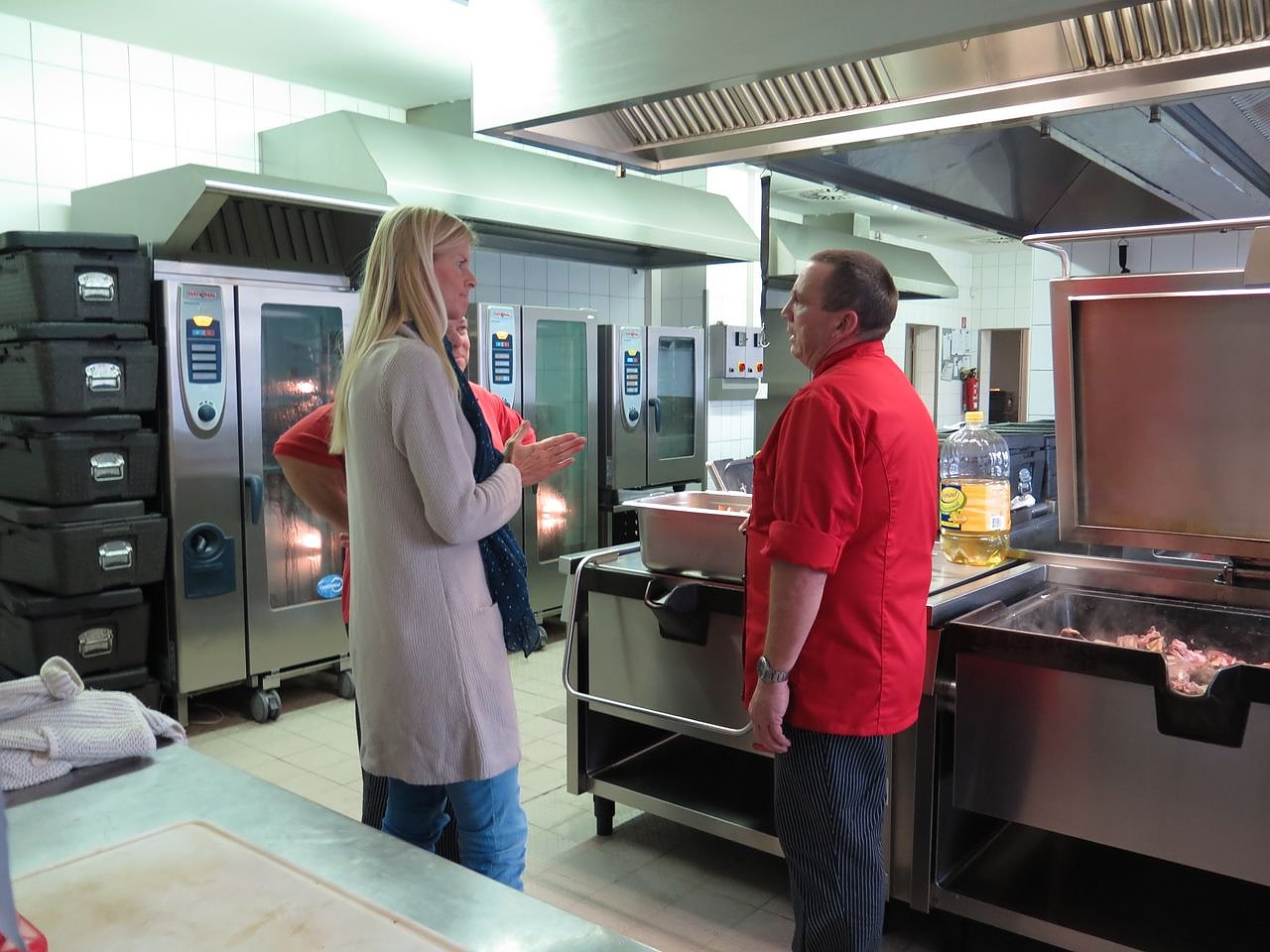 Das und noch viel mehr erzählte René Kübler heute Vormittag einem Team des Thüringen-Journal, das sich auf die Spuren der Folgen des künftigen Mindestlohnes begab. Moderatorin Susanne Reichenbach ließ sich die Abläufe in der Küche erklären, zum Beispiel, dass es im Kochhaus keine dunklen Fertigsoßen gibt, sondern das die hier selbst gezogen werden.