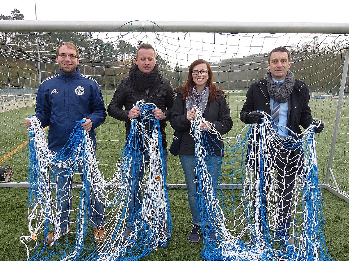 Neue Netze für den Albert Kuntz Sportpark - Florian Heddergott, Mirko Trocha, Jessika Wacker und Sven Pistorius. (Foto: Klaus Verkouter)