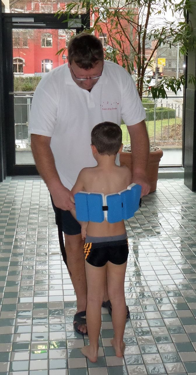 Heute stand die Wiederholung von Atmung in Kombination mit der Schwimmbewegung im Mittelpunkt der Unterrichtsstunde. Darüber hinaus wurde die Koordination von Arm- und Beinbewegungen mit Schwimmgürtel geübt.