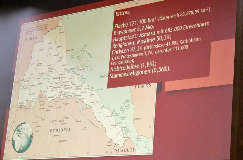 Zuerst gab Pfarrer Christoph Behr eine kurze Einführung über das Land Eritrea, das nahe dem Horn von Afrika im Nordosten des Kontinents liegt und mit einer Fläche von der Größe Österreich + Bayern gerade mal etwas über 5 Millionen Einwohner hat.