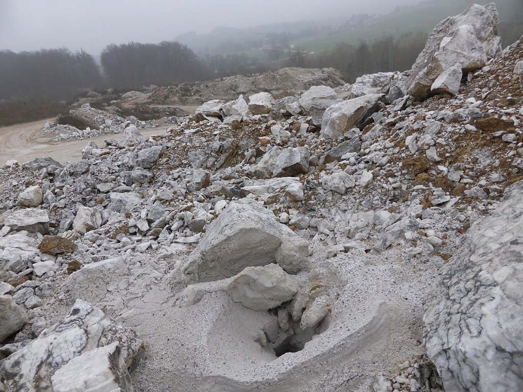 Auf meiner Begehung durch den Tagebau konnte ich feststellen, das es sich um mindestens 25 Bohrungen sowohl im unteren Bereich des Tagebaus (in Richtung Norden), als auch am Südrand und auf den mittleren Abbaustufen handelt. Wie Sie auf den beigefügten Fotos sehen können, sind die Bohrungen nach oben hin offen und laden geradezu ein, mittels Gegenständen deren Tiefe zu erkunden.