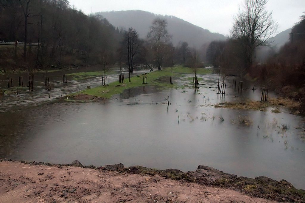 Gleichbleibende Pegelstände Die Pegelstände der Zorge und der Bere haben sich im Verlaufe des Tages nicht weiter erhöht. Peter Blei machte sich dennoch auf, um hinter Ilfeld Bilder von der imposanten Bere mitzubringen...