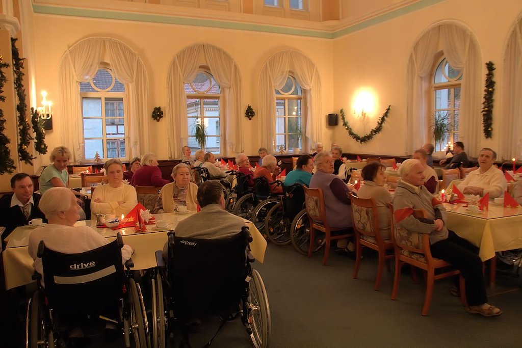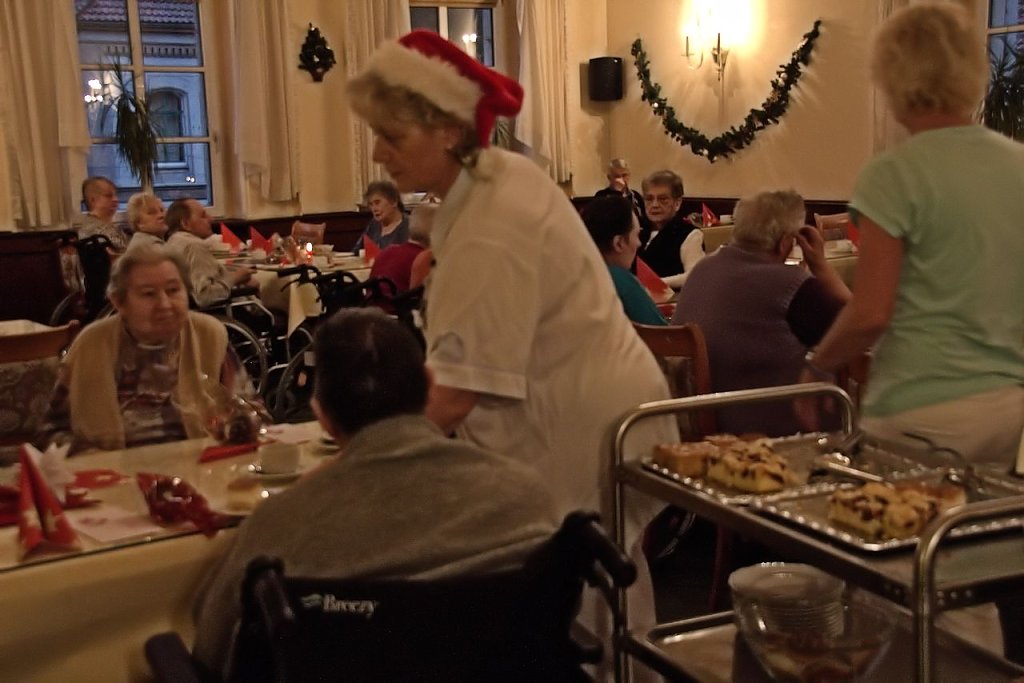 Dass der Speiseraum an diesem besonderen Abend nicht gant gefüllt war, lag auch in der Tatsache begründet, dass eine Heimbewohner von ihren Famiienangehörigen abgeholt wurde und somit den Heiligen Abend im Kreise der Familie feiern konnten.