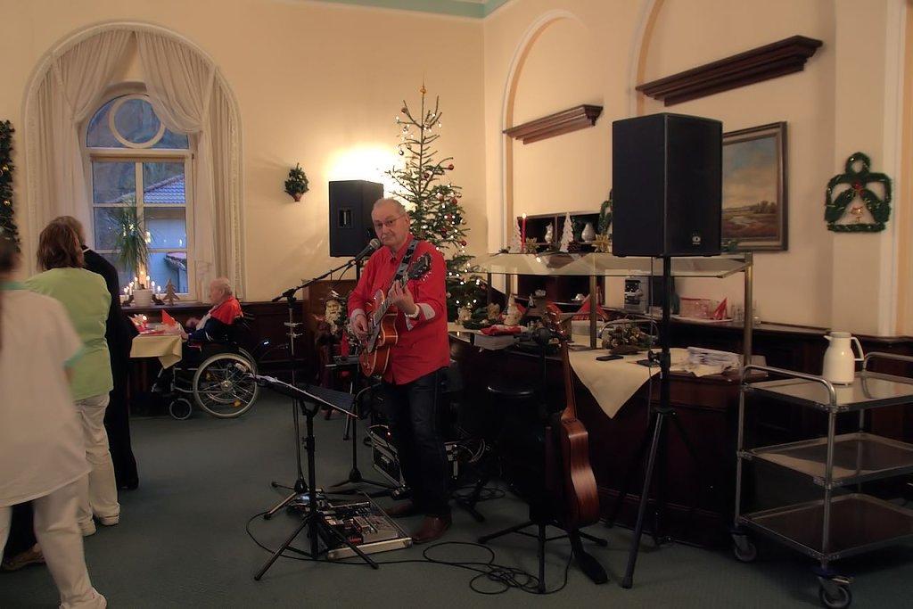 Die Geschäftsführerin der Neanderklinik Frau Röder hielt eine kurze Ansprache an die Bewohner, dann gab es Kaffee und Kuchen. "Alfons Solo" sang dazu Weihnachtslieder, an die sich wohl die meisten Bewohner erinnern konnten.