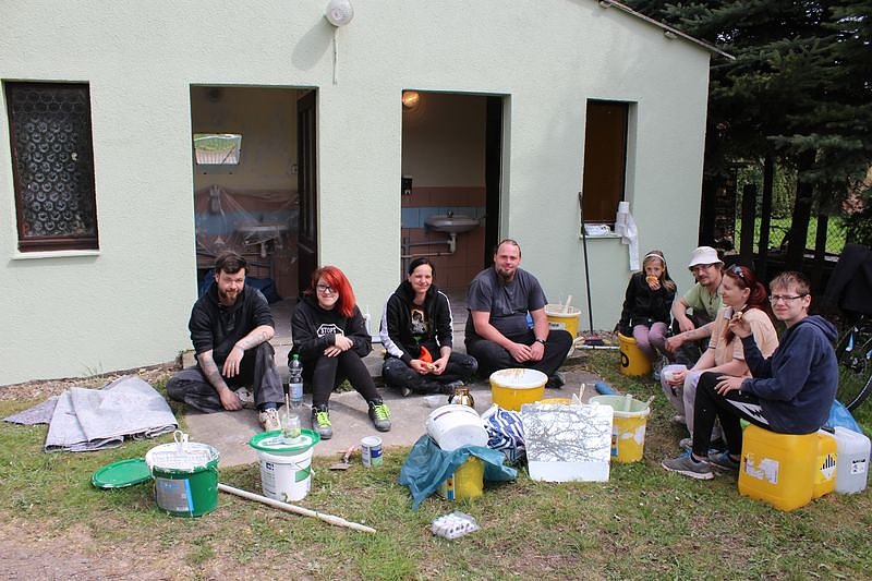 Neugierig, wie die Presse nun mal ist, wurde erkundet, was treibt ihr hier. Klar, nach viel Arbeit musste eine Pause sein. Die Mitglieder waren gerade dabei die Toilettenanlage auf dem Festplatz von Berka zu renovieren. Und das mit doppeltem Hintergrund.