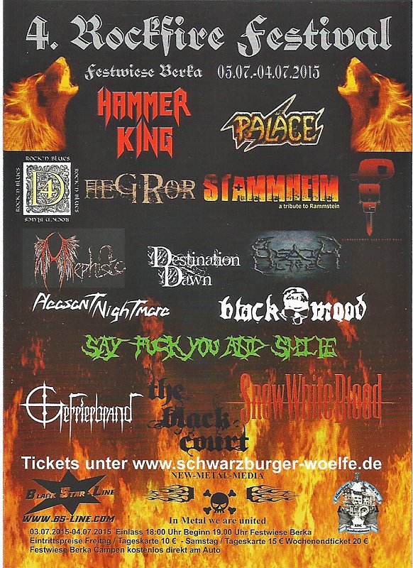Am 3. und 4. Juli startet auf der Festwiese das 4. Rockfire Festival. Wie kn erfahren hat, werden 15 Bands auftreten. Also schon mal Termin vormerken.