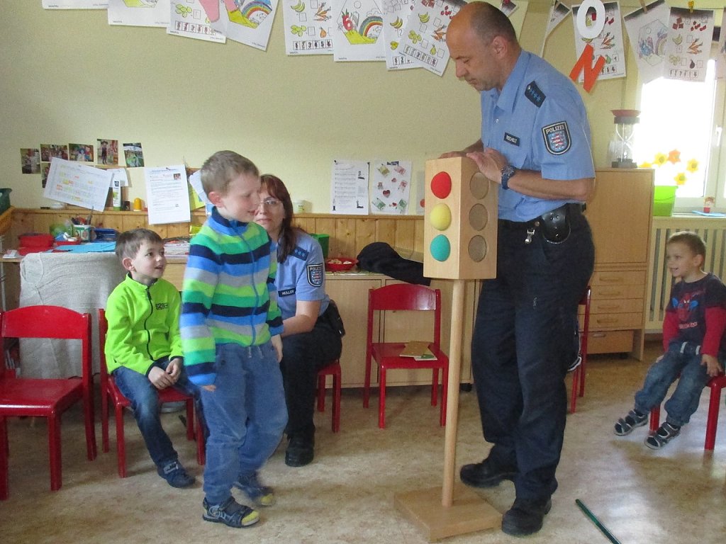 Für zukünftige Schulkinder ist es wichtig, Verhaltensregeln im Straßenverkehr und bei der Benutzung öffentlicher Verkehrsmittel zu kennen und anzuwenden. Aus diesem Grund hatten die Erzieherinnen der Kindergartengruppe die Verkehrssicherheitsberater Frau Müller und Herrn Reichelt von der Nordhäuser Polizei in die Johanniter- Kindertagesstätte Regenbogen eingeladen, erläutert Anett Papke, Leiterin der Einrichtung.