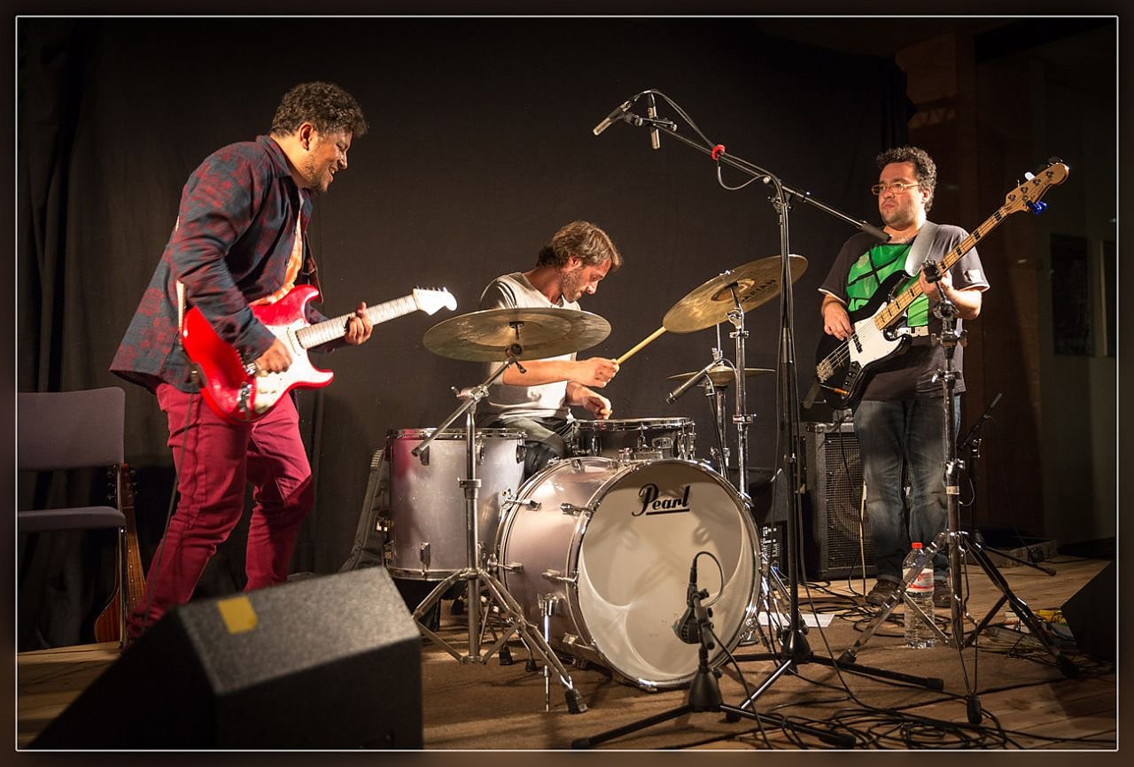 DADI & THE PASSENGERS traten an diesem Abend in folgender Besetzung auf: Alex Azevedo – E-Gitarre und Weißenborn-Gitarre (Hawai-Gitarre), Bruno Oliveira – Drums und Joel Maia – E-Bass. Normaler Weise verfügt die Band noch über einen weiteren Gitarristen, der aber zu dieser Tour leider verhindert war.