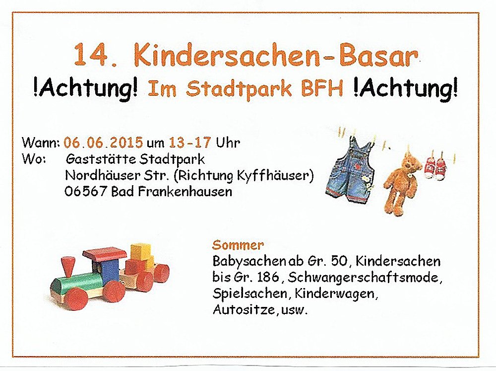 Am 06.06.2015 findet der Kinderbasar statt: