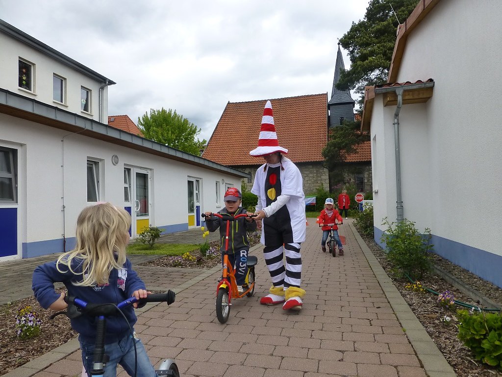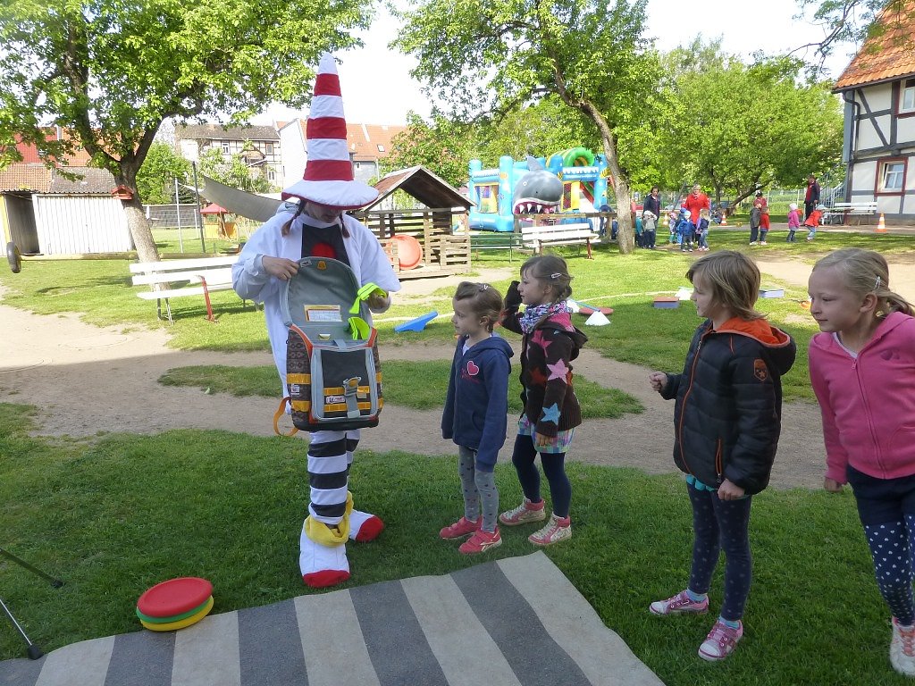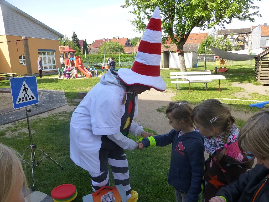 Die Kinder waren begeistert von den vielen Angeboten. Durch das Programm führte das Maskottchen der Landesverkehrswacht Thüringen, das Ampelinchen.