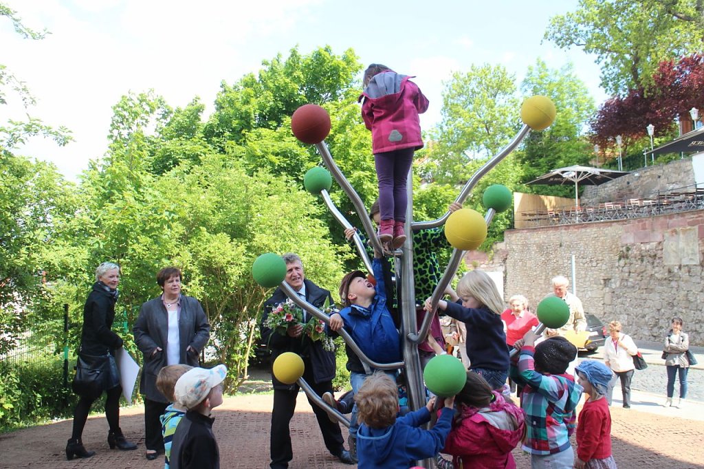 Immerhin, mit dem Kletterbaum ist ein weitere Schritt zur Belebung der Altstadt getan. Die Kinder jedenfalls eroberten das Gerüst gleich vom untersten Ast bis zur obersten Spitze.