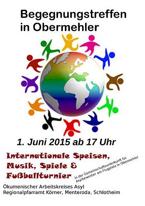 Für Montag, den 1. Juni, lädt der Arbeitskreis Asyl alle interessierten Bürger und Asylbewerber zu einem Begegnungstreffen in die Gemeinschaftsunterkunft nach Obermehler ein.