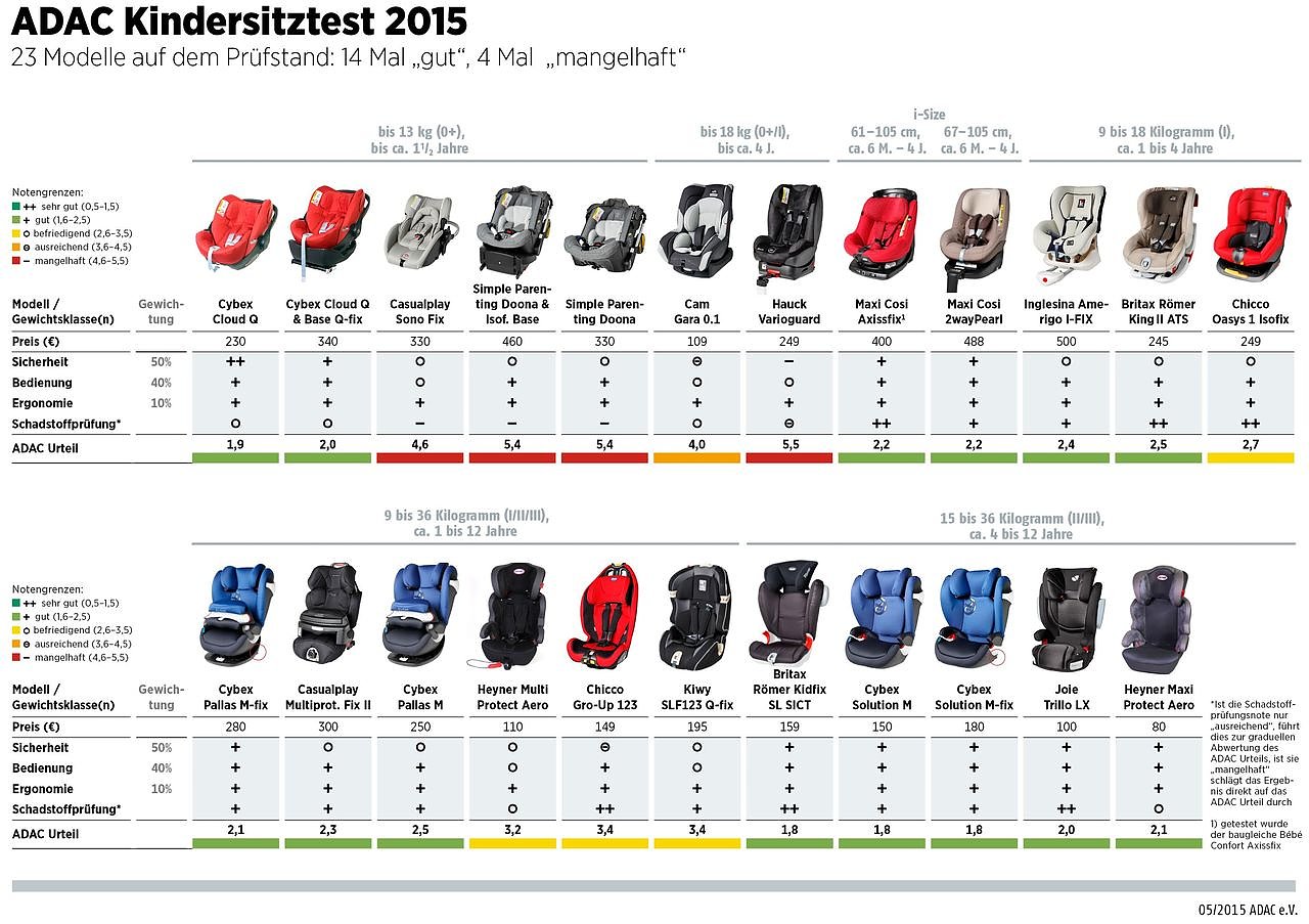 Im aktuellen Kindersitztest von ADAC und Stiftung Warentest wurden 23 Kindersitze aus allen Kategorien unter die Lupe genommen. Die Hauptkriterien dabei waren Sicherheit, Bedienung, Ergonomie und Schadstoffgehalt. Viermal mussten die Tester die Note mangelhaft vergeben...