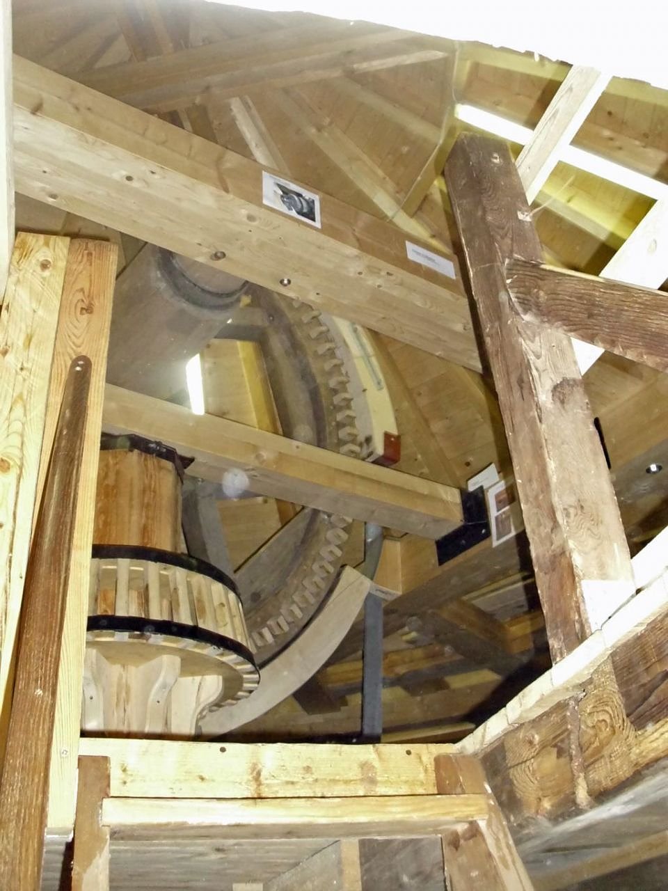 Leider war der Wind am Vormittag stark genug, um wirklich mit der funktionsfähigen Mühle mahlen zu können.