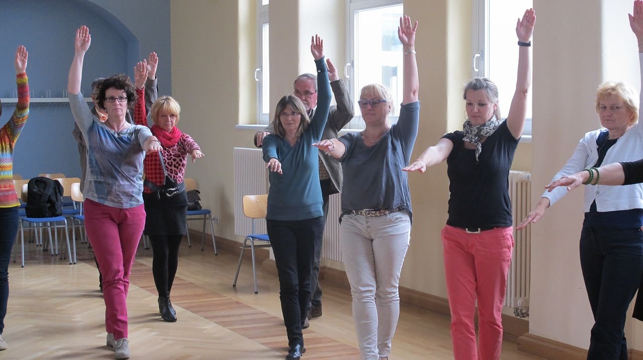 Die Rahmenbedingungen für erfolgreiches Lernen standen dabei im Mittelpunkt seiner Ausführungen. Doch nicht nur für die Ohren hatte der erfahrenen Dozent etwas mitgebracht. Unter seiner Anleitung probierten die Teilnehmer das Lernen unterstützende Bewegungen für den Schulalltag aus.