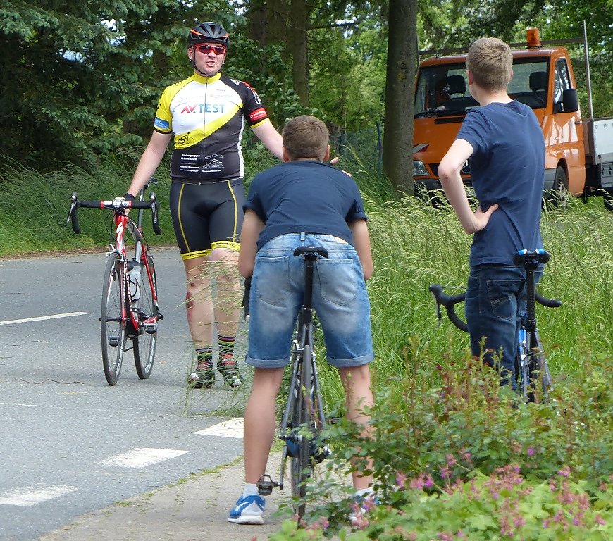 Erik Wetzel und Niklas Aksteiner starteten in der Jugendklasse U 17. Gemeinsam mit den Elitefrauen und den Junioreninnen, darunter die Deutsche Straßenmeisterin der U19, gingen sie an den Start. Sechsmal musste das Feld den Rundkurs absolvieren und blieb in den ersten Runden trotz hohen Tempos zusammen.