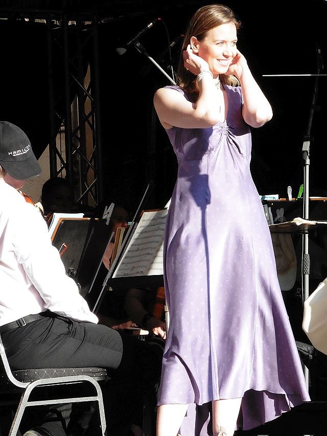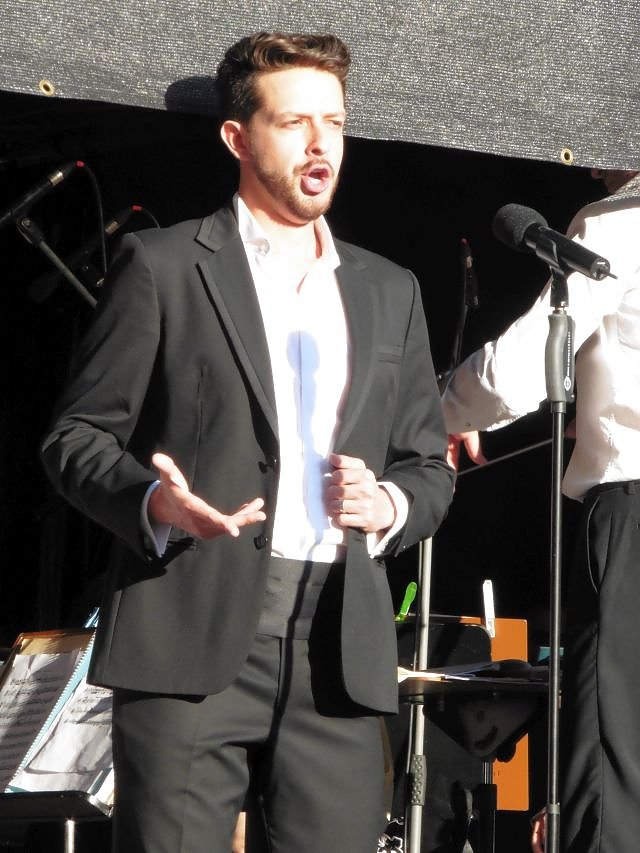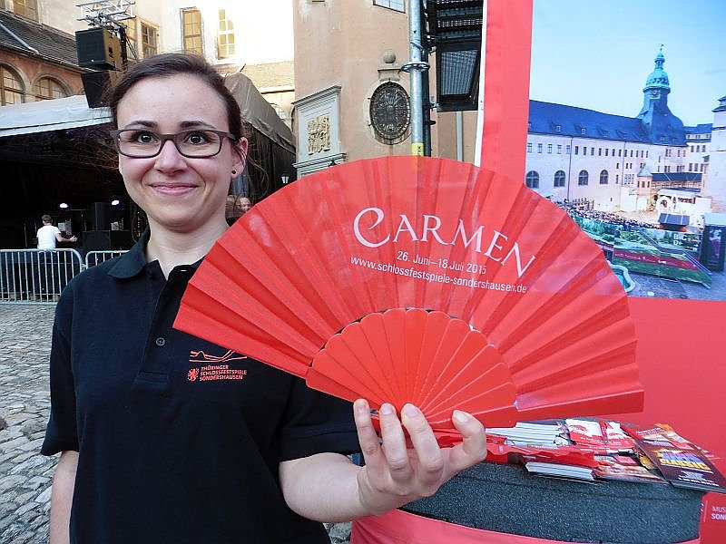Gemeinsam mit dem Loh-Orchester stellten sich Sarah Hudarew (Carmen), Tijana Grujió (Micaela) und Salomón Zulic Del Canto (Morales/Escamillo) dem Publikum des Stadtfestes vor.