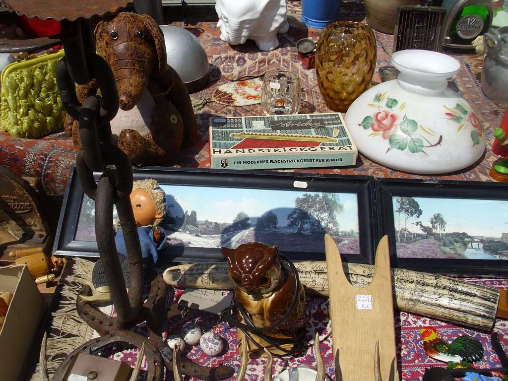 Zum Beginn des Blasmusikkonzertes des Bergmannsorchesters verweilten auch wir etwas. Dann zog es uns aber weiter in den Lustgarten, wo diverse Trödelhändler vielerlei feil boten. Vieles kommt einen auch noch bekannt vor, beginnend von alten Hand-Kaffeemühlen, über die DDR-Handstickmaschine, alte Werkzeuge, Bücher, Schallplatten und etliches mehr. In manchen Dingen wurden auch hier eigene Erinnerungen an früher und die eigen Arbeit wach, aber letztendlich wurde nichts gekauft.