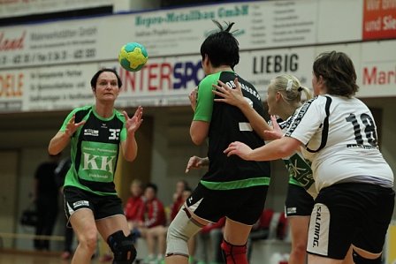Dies zeigte kurzzeitig Wirkung. Über die Stationen 2:6, 4:6 waren sie beim 7:9 wieder im Spiel angekommen. Doch die Hausherrinnen waren an diesem Tag einfach konzentrierter. Sie holten sich die Initiative auf dem Parkett zurück und schraubten den Zwischenstand auf 14:8. Diesen Vorsprung von 6 Treffern hielten sie bis zum Pausensignal.