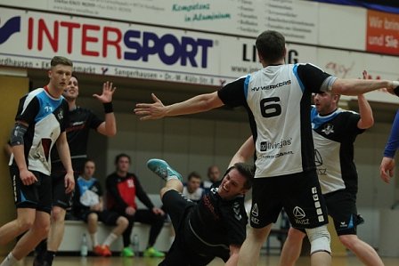 Der anfängliche 0:2 Rückstand wurde in der 5 Minute egalisiert und sogleich die Führung übernommen, bis zum 5:2. Danach erzwangen die HV Männer noch einmal eine Verkürzung auf 5:4 (11. Spielminute), doch was danach auf sie hereinbrach konnten sie nicht mehr aufhalten.
