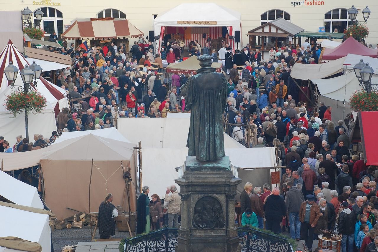 Gefeiert wurde Martin Luthers 532. Geburtstag, der allerdings erst übermorgen, am Dienstag, dem 10. November, ist. Immerhin hält die Stadt auch an diesem Tag ein ansprechendes Programm zu Ehren ihres großen Sohnes bereit: Ab 10 Uhr legen Kinder und Erwachsene Blumen am Lutherdenkmal auf dem Markt nieder. Jeder ist eingeladen, zuzuschauen oder selbst eine Blume niederzulegen und dem Mann die Ehre zu erweisen, dem Deutschland eine einheitliche Sprache und die Welt die Reformation zu verdanken hat. Ein weiterer Höhepunkt am Dienstag wird ab 19 Uhr ein Konzert in der Kirche St. Annen sein (Eintritt frei). Das Rossini Quartett Magdeburg, Kammersängerin Undine Dreissig (Mezzosopran) und Trompeter Tilmann Schneider werden ihr Publikum mit dem Programm Luther und die Nächstenliebe erfreuen. Von Martin Luther ist der Spruch überliefert: Unser Nächster ist jeder Mensch, besonders der, der Hilfe braucht.