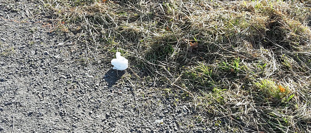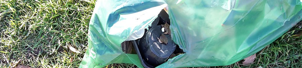 Hier wurden mal wieder in einem Müllsack offensichtlich alte Pflanzgefäße entsorgt. So weit ja noch ganz gut. Muss man aber seine Mülltüten unbedingt auf dem Wipperdamm nahe der Kiesgrube ablegen. Wer macht sich die Müh (Foto: Karl-Heinz Herrmann)">