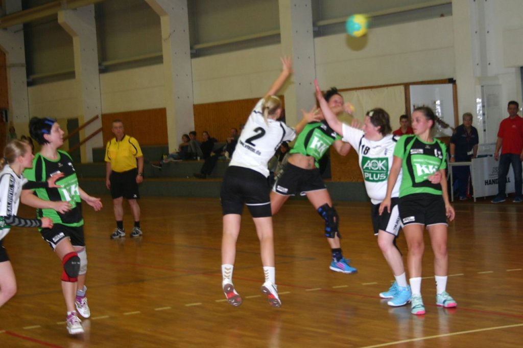 Für einige Minuten ging es dann hin und her. Nordhausen legte wieder vor, Maxi Hauschild aber hielt ihr Team bis zum 8:11 auf Tuchfühlung. Zwei umstrittene Szenen sorgten in dieser Phase für viel Unruhe. Zunächst war Patricia Bischoff böse gefoult worden. Zwei-Minuten-Strafe zwar für die Sünderin, aber der eigentlich fällige Siebenmeter wurde nicht gegeben. Auf der anderen Seite dann ein höchst fragwürdiger Strafwurf für Mühlhausen, den aber Nancy Brodhuhn glänzend parierte.
