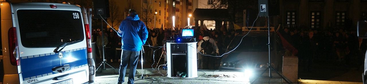 Auf dem Theaterplatz, der nach Polizeiangaben mit 300 Personen gefüllt war, ging es nach einem musikalischen "Wir sind das Volk"-Opening erst einmal um das "Projekt Widerstand", das gemeinsam gegen die Regierenden gestartet werden müsse. Es ging gegen meineidige Politiker, die nicht das Interesse des deutschen Volkes vertreten.