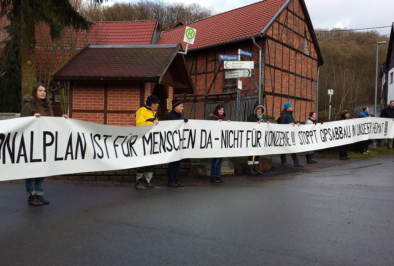 Es wird die Angst vor Arbeitsplatzabbau geschürt, es werden Argumente bemüht, dass der Bedarf für Gips völlig falsch eingeschätzt würde, der REA-Gips nicht ausreiche, Gipsrecycling noch in den Kinderschuhen stecke und der Naturgips daher unersetzbar und die abgebauten Flächen rekultiviert werden könnten. Nachzulesen im nnz-Gespräch mit Andre Materlik von der Firma Knauf vom 03.02.2015, im Artikel über den weiteren Abbau am Winkelberg vom 12.08.2015 aber auch in Werbeanzeigen der Firma CASEA. Die einzige Firma, die völlig im Stillen agiert, und damit eine ganz andere Strategie fährt, ist Formula (Walkenried).